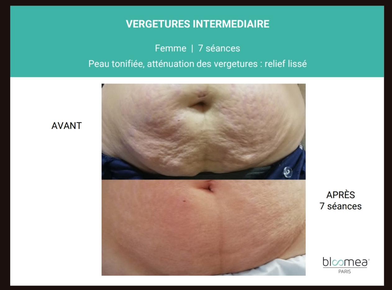 - Traite les vergetures (cuisses, fesses, poitrine, ventre et hanches)