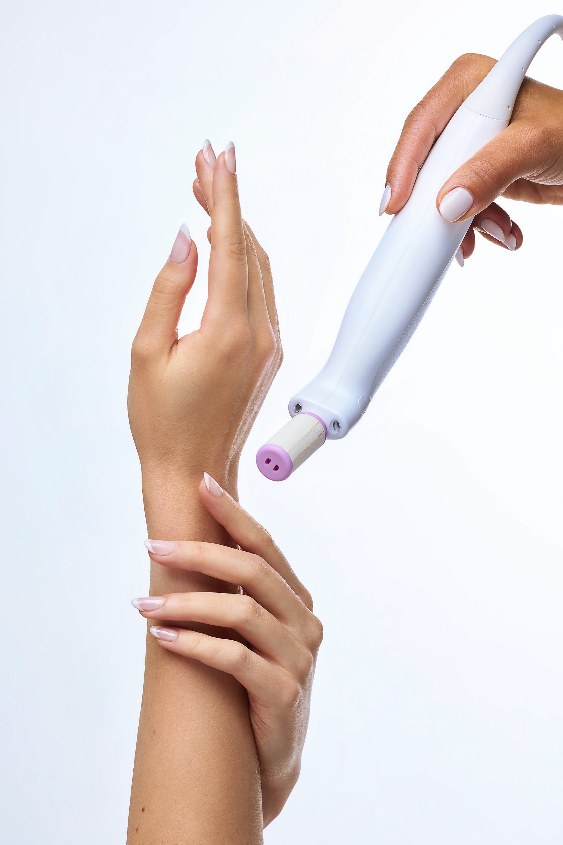 Grâce à un embout à usage unique, la partie granuleuse travaille avec un système d’oscillation la surface de la peau afin d’exfolier l’épiderme pour lisser la peau et unifier le teint.